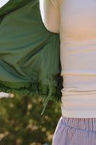 - Vest is adjustable in length for an optional cropped fit